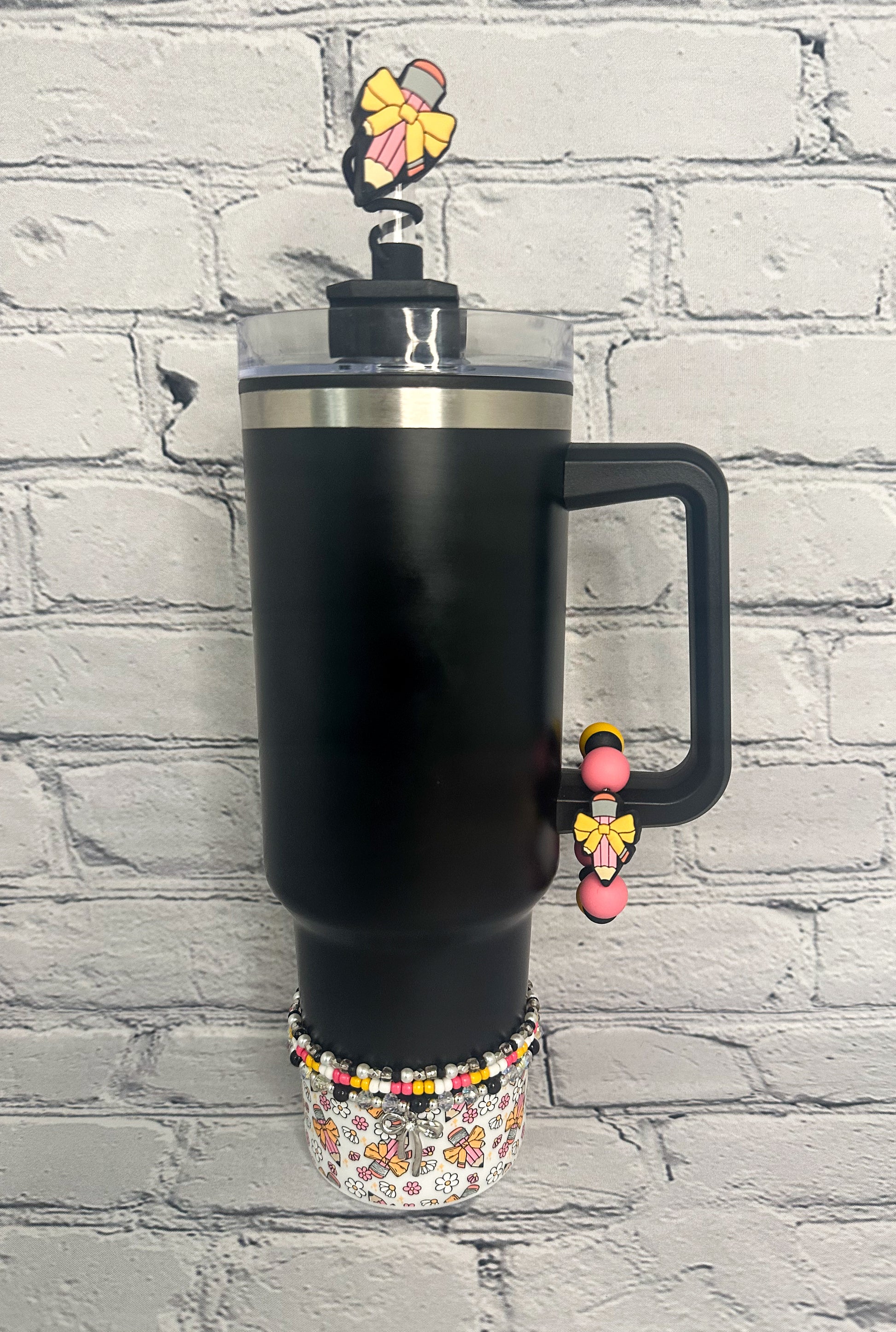 This tumbler accessory set is a must-have for any tumbler enthusiast!! The set includes a silicone tumbler boot, a cup charm and straw topper - all designed to add a touch of style and personality to your tumbler.
