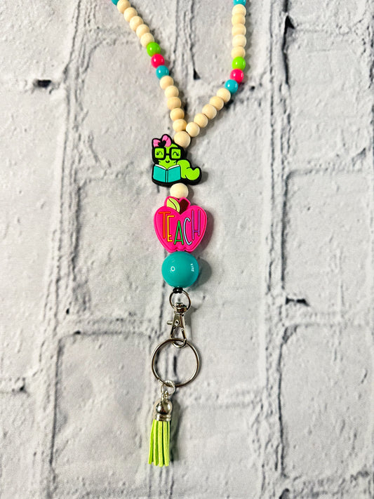 Our lanyards are created using a mix of silicone/rhinestone/acrylic/clay/wooden beads. They feature a breakaway clasp for safety and a lobster clasp with key ring for easy attachment of keys or ID badges.